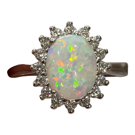 Oval Opal Reflecting Multicolor Lighting And Sparkling Rhinestone