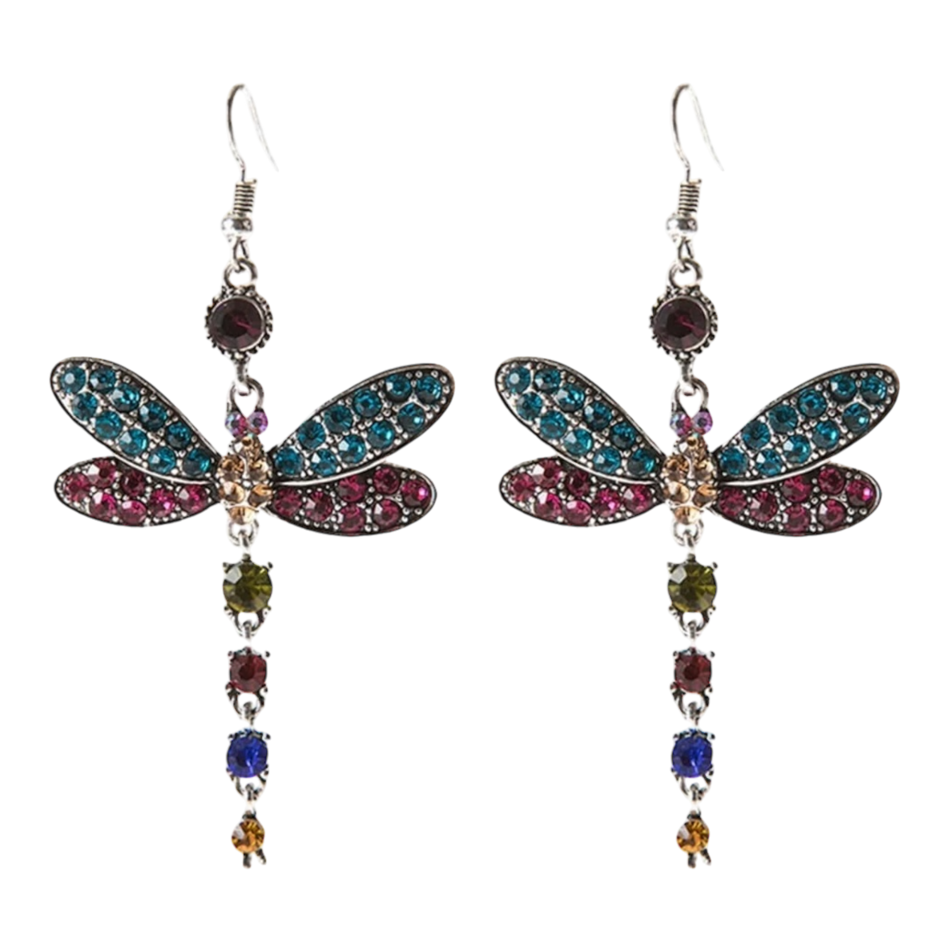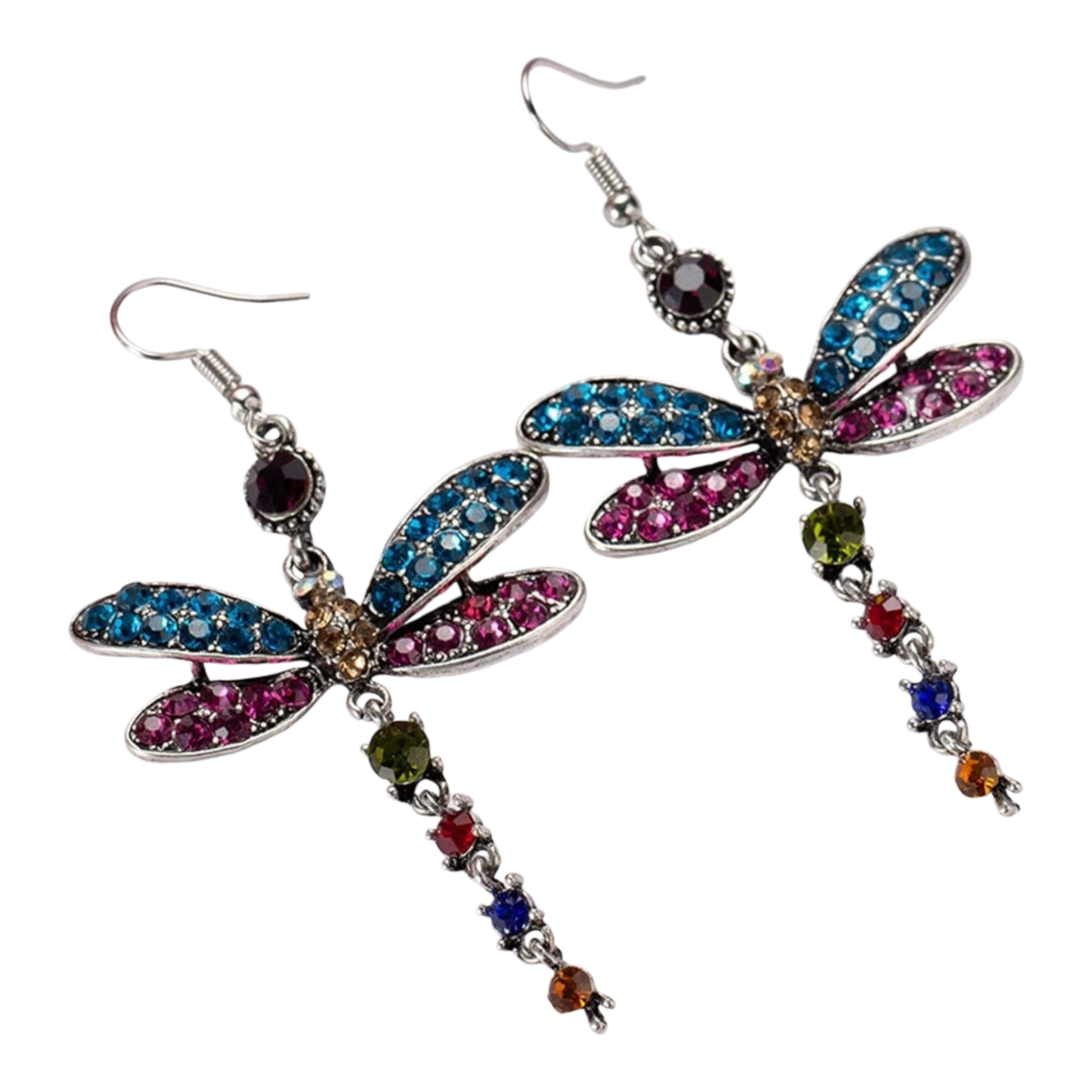 Multi colored Rhinestone Dragonfly Drop Earrings
